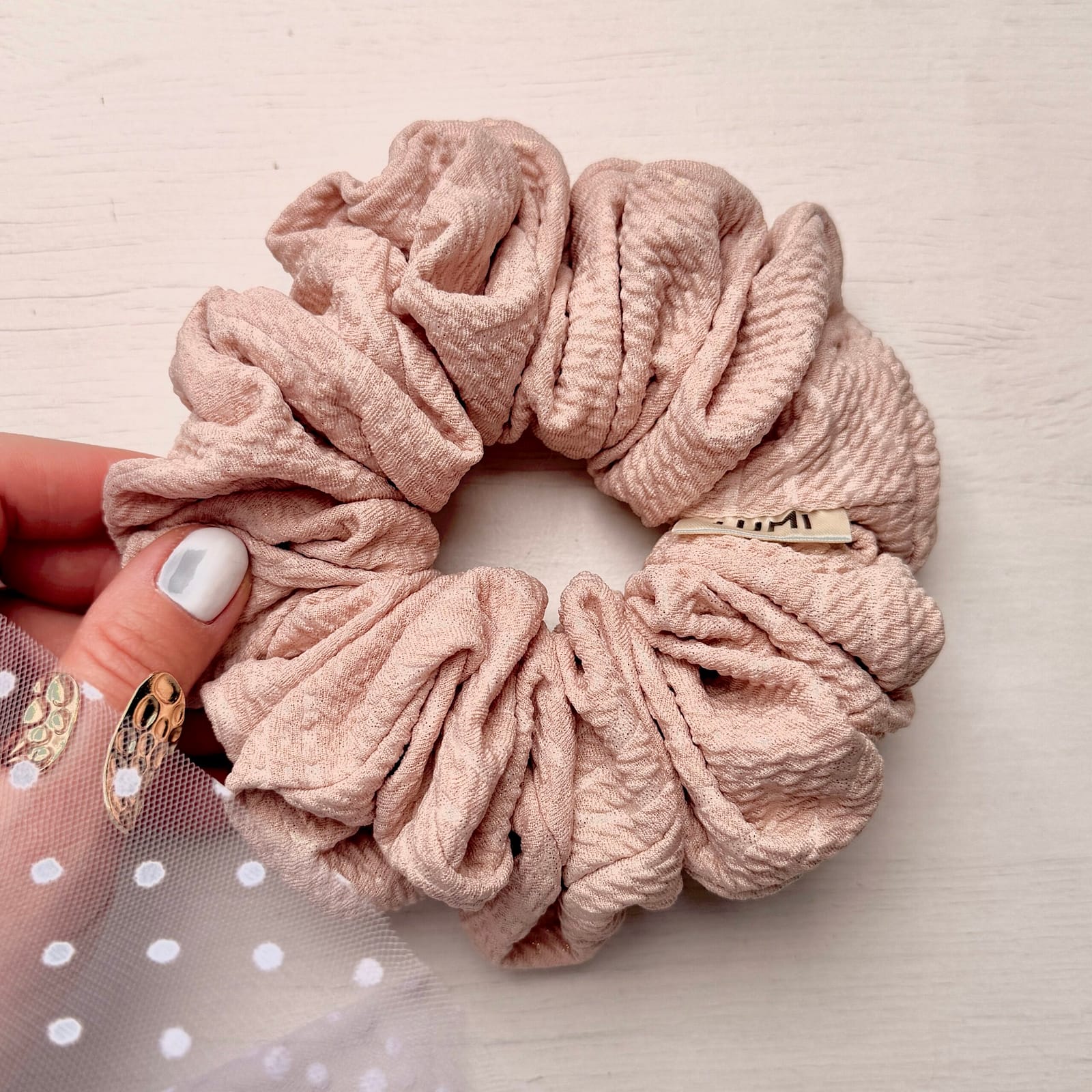 Nasze gumki do włosów tworzymy z dbałością o detale, trwałość i wygodę. Ruby Scrunchie stabilnie trzyma fryzurę, jednocześnie pozostając delikatna dla struktury włosa – idealna do koka, kucyka lub luźnego upięcia.